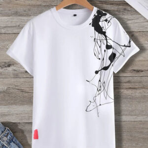 Upgrade your casual style with our men’s cotton sticker printed t-shirt, designed for a perfect...